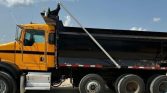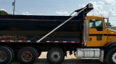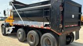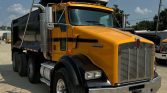 The 2006 Kenworth T800 dump truck has 568,259 miles and 31,685 hours on the meter. It’s equipped with a Caterpillar C13 Acert engine, a 6-cylinder diesel engine with an engine brake. The truck features an Eaton Fuller 8LL manual transmission with 10 speeds. The chassis has a triple axle setup with a steerable pusher axle, full differential lock, and spring-over walking beam suspension. The GVWR is 64,500 lbs. The dump bed is made by Crysteel, measuring 17′ x 96″ with a 48″ side height and 10″ side board height, and features a roll tarp, single ram, and an air-operated end gate. The tires are 425/65R22.5 for the front, 11R22.5 for the rear, and 11R22.5 for the lift axle. Inside, the truck is equipped with AC, heat, heated mirrors, and cruise control.
