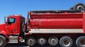 This six-axle truck features a steerable pusher axle and a tag axle. It has an inter-axle differential lock, walking beam suspension, air brakes, and PTO. The GVWR is 90,000 lbs, with front, inter, and rear axle ratings of 20,000 lbs, 23,000 lbs, and 23,000 lbs…
