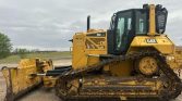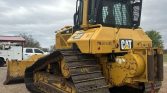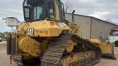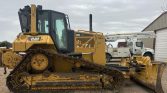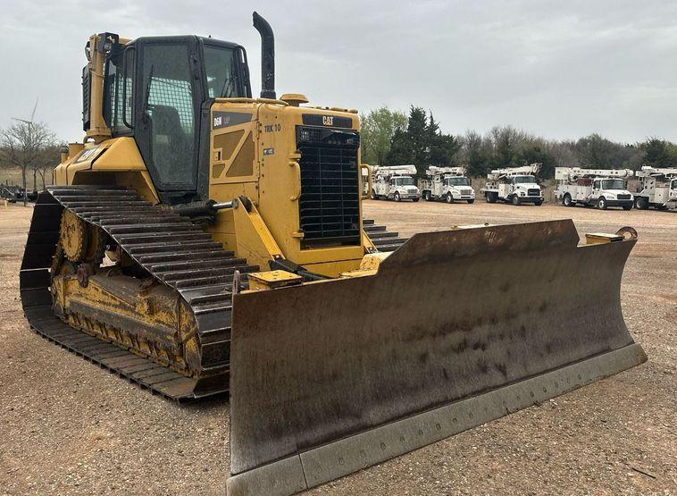 This 2013 Caterpillar D6N LGP dozer has 7,742 hours on the meter and is powered by a 6-cylinder Caterpillar diesel engine. It features a powershift transmission with 5 forward and 5 reverse speeds, and is operated via joystick steering from an enclosed cab equipped with air conditioning and heat.