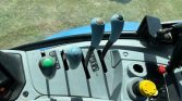 The operator’s station includes air conditioning and heat for comfort, a light bar, and a display panel. It is also equipped with a New Holland FM-750 Auto Steer system for precision guidance during field operations.