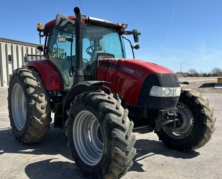 This 2015 Case IH Maxxum 125 MFWD tractor has 4,838 hours on the meter and is powered by a 6.7-liter, 6-cylinder FPT diesel engine. It features a Powershift transmission with 16 forward and 16 reverse speeds and includes a differential lock for improved traction.