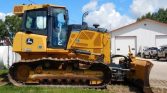 This machine includes a rear drawbar and a 6-way straight dozer blade, measuring 11 feet wide, ideal for versatile grading and earthmoving tasks. It rides on 30-inch wide tracks with single grouser pads and seven bottom…