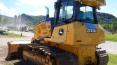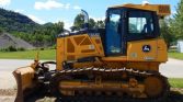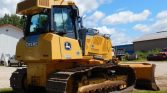 This machine includes a rear drawbar and a 6-way straight dozer blade, measuring 11 feet wide, ideal for versatile grading and earthmoving tasks. It rides on 30-inch wide tracks with single grouser pads and seven bottom rollers, providing excellent traction and durability. Track guards add extra protection for longer life in tough conditions.