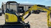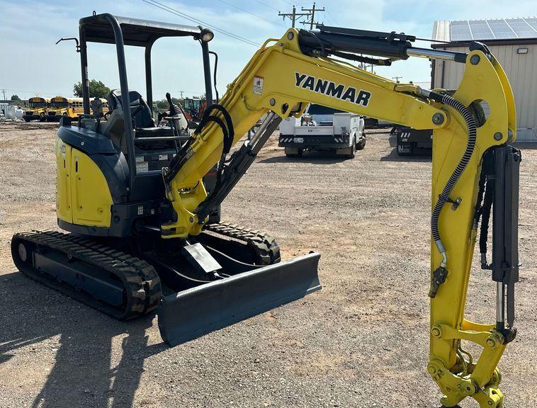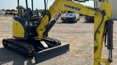 The 2015 Yanmar VI035-6A mini excavator has 4,281 hours on the meter and is powered by a 3-cylinder Yanmar 4HNSAE diesel engine with a displacement of 1.642L. It features a hydrostatic transmission with two-speed travel for optimal maneuverability and efficiency. The operator’s station is an OROPS (Operator’s Roll-Over Protection System) and includes a pattern changer for easy switching between operating modes. The mini excavator is equipped with auxiliary hydraulics for two-way operation and a hydraulic quick coupler for fast attachment changes. It also includes a swing boom, a 4′ 6″ stick, and a backfill blade with a width of 68″. The tracks are 12″ wide rubber, offering a stable and durable foundation for work on various terrains. This compact yet powerful machine is designed for precision and reliability in tight spaces and demanding conditions.