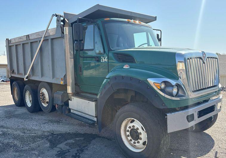 The 2016 International 7600 dump truck has 129,752 miles on the odometer and 6,772 hours on the meter. It is powered by a Navistar N13 12.4L 6-cylinder diesel engine paired with a 10-speed Eaton Fuller manual transmission.