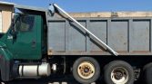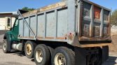 Inside, the truck includes AC, heat, power windows, and cruise control. The dump bed is a Davis FMT 16-15 steel bed, measuring 15 feet long by 8 feet wide, with a capacity of 16 cubic yards. The bed has 51-inch side height and 6-inch side board height, a single ram, air-operated end gate, and roll tarp.