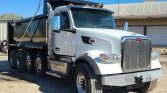 2023 Peterbilt 567 dump truck Miles: 31,349 on odometer Engine Cummins X15 Displacement 14.9L Cylinders 6 Fuel type Diesel Transmission Automatic Chassis Axles 4 Pusher axle Differential lock Full Suspension Spring over walking beam Brakes Air PTO GVWR 85,000 lbs Interior AC Heat Power windows Cruise control Features Dump bed Load King LK18DB077 Capacity 22 cu. yd. 18′ L x 96″ W Side height 58″ Bed type Steel Barrel Ram Single End gate Air operated Tires 425/65R22.5 Lift axle 295/75R22.5